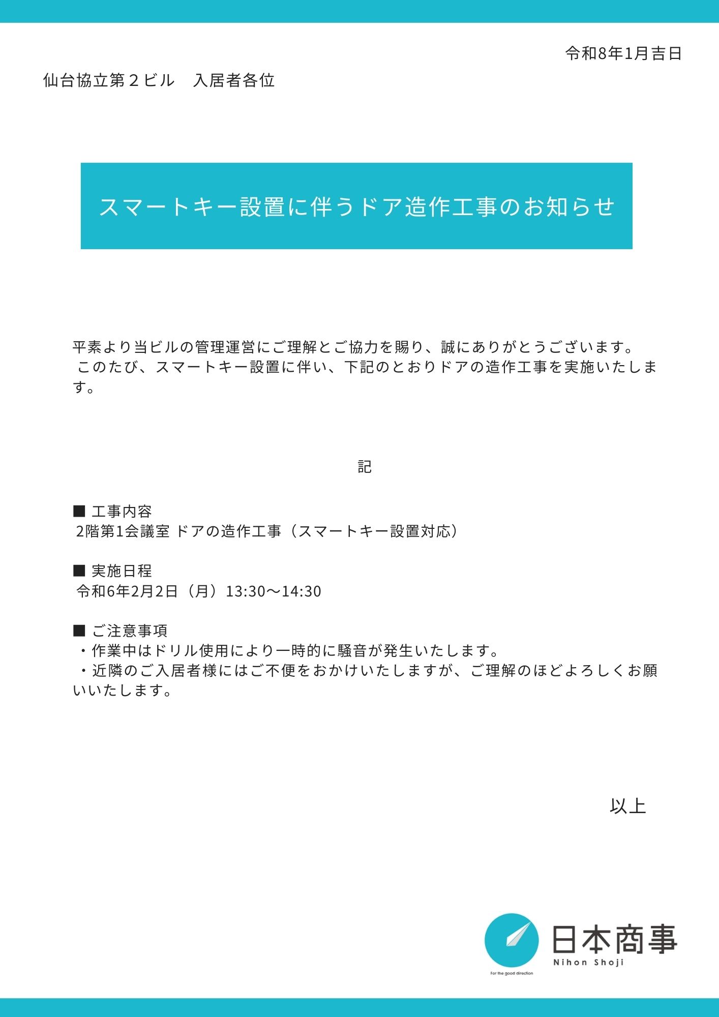仙台協立第2ビル|0202_2階第1会議室ドア造作工事のお知らせ