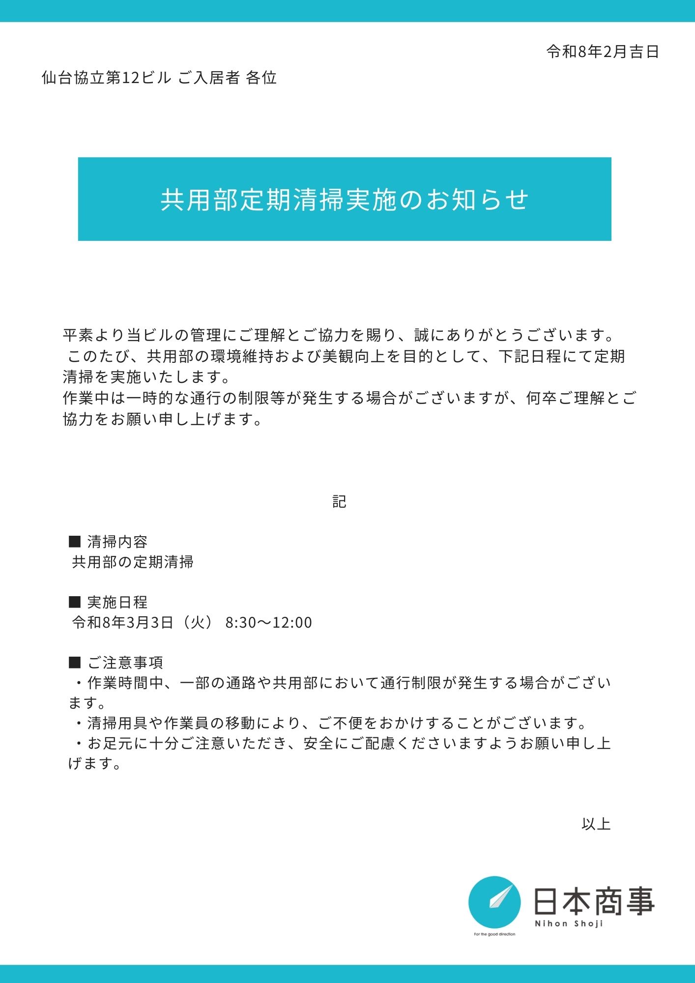 仙台協立第7ビル|0228_定期清掃のお知らせ 仙台協立第7ビル|0228_定期清掃のお知らせ